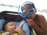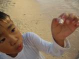 食事もそこそこに朝もはよから再び瀬底ビーチへ。誰もいないよ一番乗り。 男子はビーチバレー、ヤドカリとカニ探し。私はベビおんぶでサンゴと貝を拾いまくる。