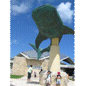 その後ちかくの美ら海水族館へ移動。ってびっくり。混んでいるのは分かっていたけど混みすぎでしょう。 魚より人のほうが多いでしょう。屋外の「オキちゃん劇場」を観たまではよかったけれど、屋内に入るともういかん。水槽に近づけない。家族が離れ離れ。ナポレオンフィッシュ面になる私。