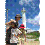 ホテルをチェックアウトして灯台へ向かう。空の青に白い雲が眩しい。南国の光にやられつつ記念撮影ふてる子どもたち。疲れるから上までいかなくていいや、 という軟弱一家、さっさと引き揚げてブルーシールのノボリにふらふらと吸い込まれる。