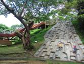 水族館と駐車場の往復には海洋博公園をちょっとだけ通る。あまりに強烈な日差しに散策の余裕はない。途中にあるミストに喜ぶわらばー。楽しそうな遊具も多数ある。 さすがの暑さにわが息子たちもあそこで遊びたいとは言わなかった。