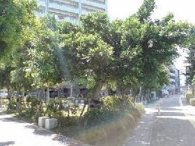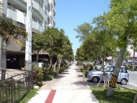 コンドミニアムの周りです。緑がたくさん。しかし沖縄の緑は深い色ですね。 太陽の光を受けまくってるからでしょうね(本当か?)。 電柱が斜めってるのは、気のせい?まあ愛嬌ってことで。