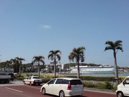 練習後、コンドミニアムに移動。コンドミニアムというか、マンションですね。ん?いっしょ? 国道58号線に面しているので、わかりやすいです。 まん前が米軍の港らしい。うーん、沖縄って感じ。分離帯の植え込みも 南国チックでいい感じだね。白い車が多いのはなぜ?気のせい?