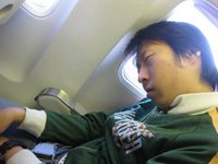 さあ、いざ出発! 行きのフライトは始発。ちょー眠いぜ。さっそく爆睡。外の景色楽しもうぜ、おい。