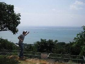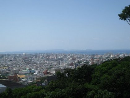その足で、首里城へ。高台にあるので、那覇の街が一望できます。 今日もいい天気。遠くにケラマ諸島が見えます。