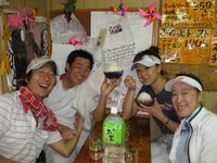 洗濯終わったとこで、一休み。風が部屋を抜けるので気持ちいい。ついついみんな 雑魚寝で昼寝タイム。 あー、疲れたよ。 夜は、初日ってことで居酒屋で乾杯。沖縄最高!! 帰りに明日の朝ごはんをスーパーで買って、1日目終了。 みんなお疲れ~。