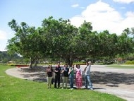 さあ、合宿の幕開け。腹を満たしたところで、漫湖公園テニスコートへ移動。 ミニバンをレンタカーしたので、7人のドライブも楽しい。