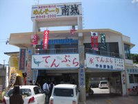 平和祈念公園を後にし、奥島にあるてんぷら屋へ行ってみた。 こちらはガイドブックにのっていたとこ。すると、ものすごい人の数。 実はここに10年前に来たことあるんだけど、そのころは、地元の人しか いなかったけど、その後の沖縄ブームやインターネットのクチコミなどで 今では一大観光名所みたいになっていた。しかし、味はふつうだな。 昔は揚げたてを食べさせてくれたけど、今は作り置き。 ブームになるとその店の味のピークは過ぎちゃうのかな、ちょっと悲しい。