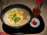 さあ、もうちょいでフライトの時間だ。 コンドミニアムに戻りお土産などをパッキングして、最後のご飯にでかけました。 コンドミニアム近くにお豆腐屋さんがあって、そこの併設の食堂へ。 沖縄最後の食事はやっぱり沖縄そばでしょ! ゆし豆腐そばをいただきました。