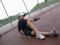 やっぱり東京とちがって沖縄は暖かいね~。 ちゃんとストレッチして、練習開始。今回は沖縄でコーチも雇いました。 テーマを”ミックスダブルスの動き”に絞って特訓開始。 コートのポジションの取り方とか、目からうろこの指導を受けた。 今まで間違っていたのか!! がっくし。でも指導どおりに動くと センターを抜かれる凡ミスが減った。よっしゃ!