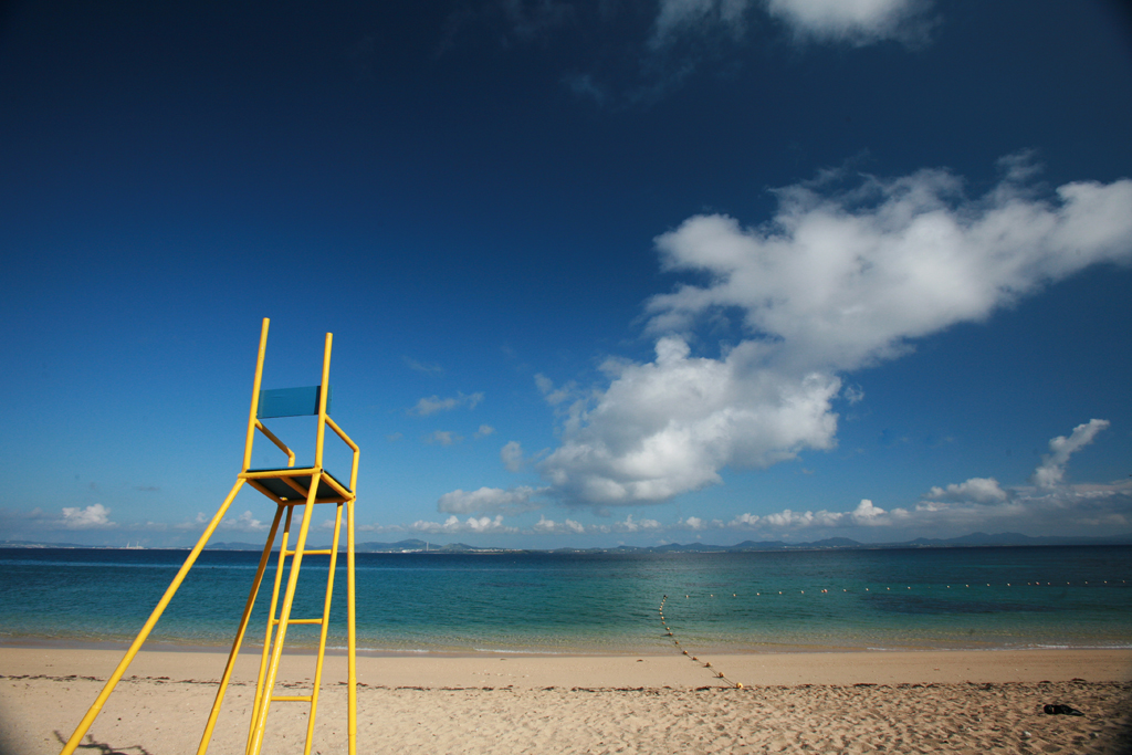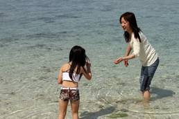 午前中は伊計島ビーチ。ここの管理人さんのおじさんと知り合いなんです。 お天気は曇りでしたが、私たちがビーチにいる間だけ晴れました。孫と海で貝殻を探して楽しみました。