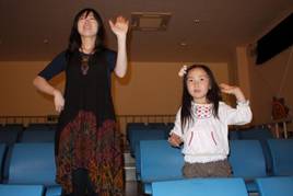 最後に訪れたのは琉球舞踏館「うどい」。ここの館長さんもダンナさんの友人。 「うどい」さんは正統派の琉球舞踏を見せてくれる劇場で一日4回公演を行っています。 舞台の合間にお客さんに琉球舞踏を教えてくれるレッスンコーナーがあり、これがなかなか面白いです。簡単にできそうでできない・・・でも一応「踊った」という充実感を味わえて楽しかったです。